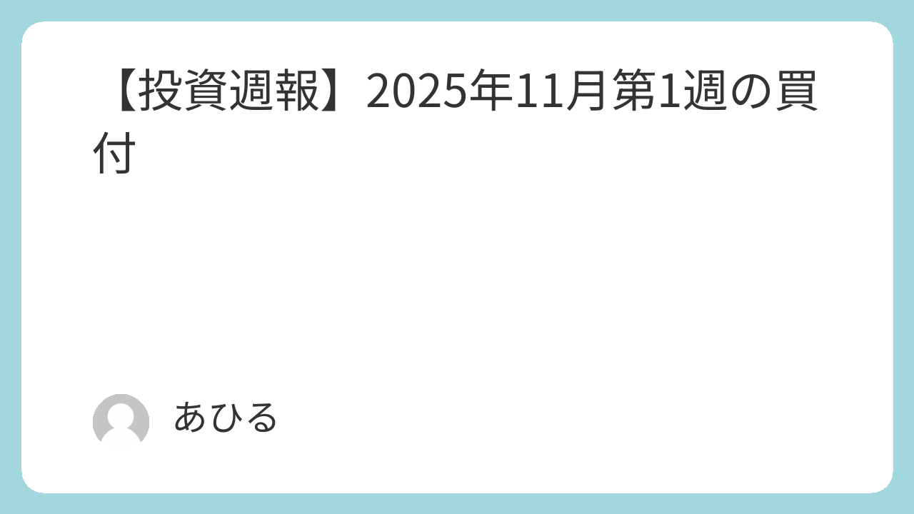 今回は、2025年11月第1週の買付についてご紹介します~。